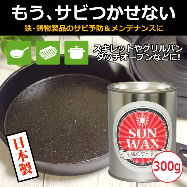 太陽のワックスを塗るだけで、鉄製品の焦げつきやサビつきを抑え長持ちさせます。